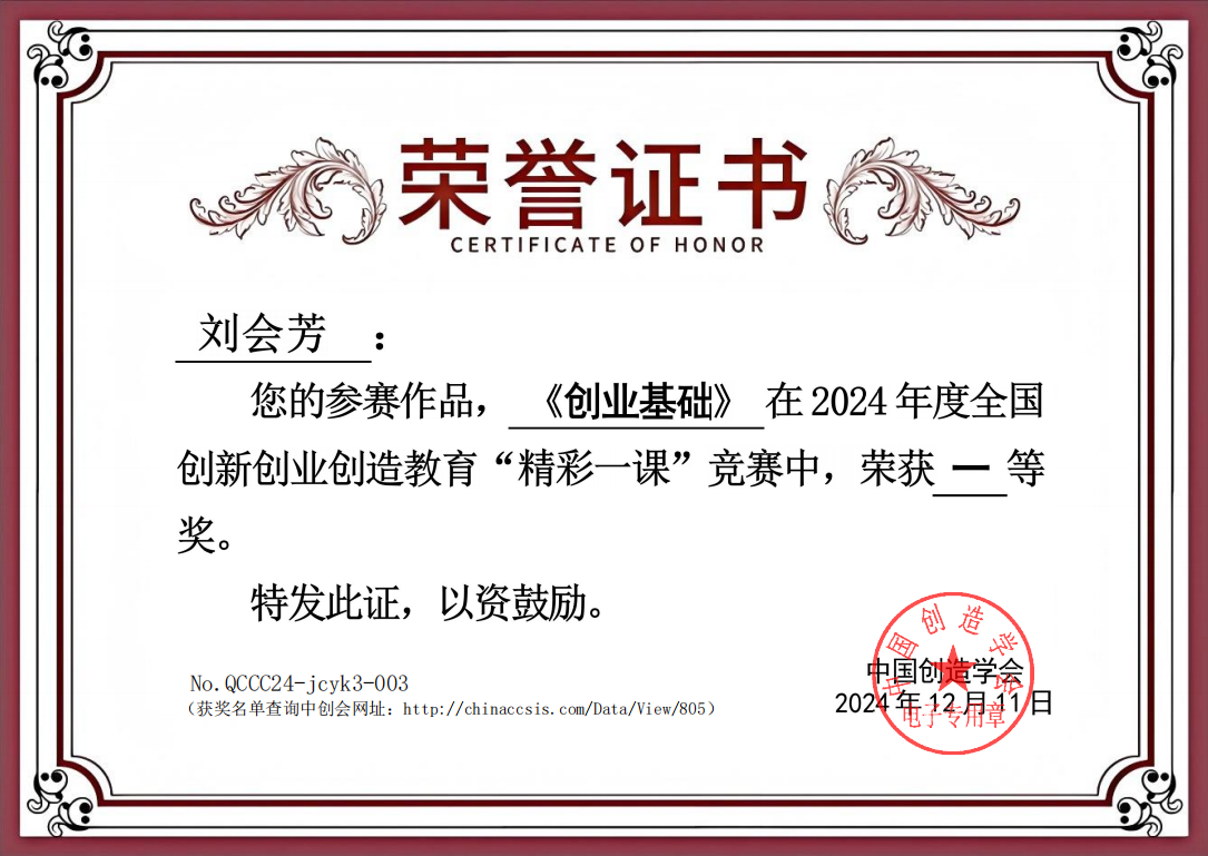 全国创新创业创造教育“精彩一课”竞赛由中国创造学会主办,中国创造学会创新创业创造专业委员会、中国创造学会创新转化分会、教育部创新创业课程群虚拟教研室(同济大学)、安徽工业大学教务处(教师教学发展中心)共同承办。该项赛事被列入了2024全国普通高校教师教学竞赛清单,并作为教学竞赛维度纳入2024版全国普通高校教师教学发展指数,旨在在进一步加强高校创新创业师资队伍建设,引导教师加强创新创业课程改革创新,提高课堂教学水平。本次比赛共有来自东南大学、东北大学、安徽工业大学等院校的92名教师参加,经过激烈比拼,我校教师在教学理念、教学内容、教学组织、教学语言与教态、教学特色等方面获得专家评委们的好评。苏玲、门金瑞、刘会芳荣获一等奖,刘建丰荣获二等奖,孔佳利、生俊青、马安佳荣获三等奖。
