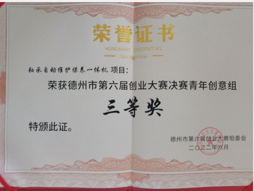 6月9日,德州市第六届创业大赛决赛在德州市人力资源市场主楼三楼会议室举行,经过激烈角逐,我校《球面激光雕刻机—聚焦助农致富宝葫芦》项目以第二名的成绩获得青年创意组二等奖,《轴承自动维护保养一体机》项目以第4名的成绩获得三等奖。此外,德州市人民政府常务副市长与我校学生亲切交谈并对获奖项目给予肯定。